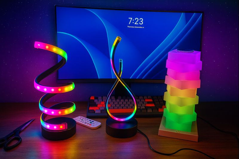 Lămpi LED Smart cu design modern și iluminare ambientală RGB.
